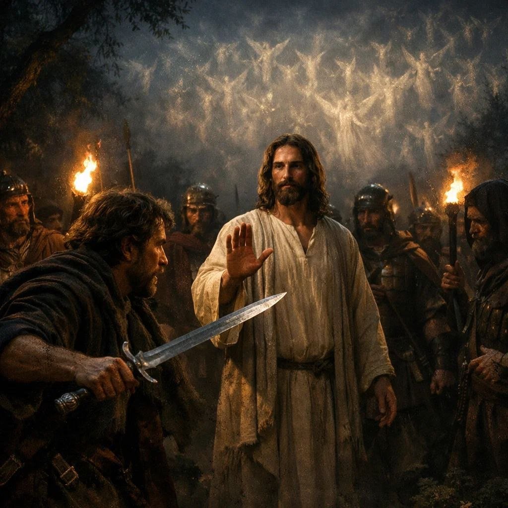He was about to be crucified, and He was calm. Why? Because physical enemies were not the real issue. He said, don’t you know I can call twelve legions of angels right now? Thousands upon thousands of angels.