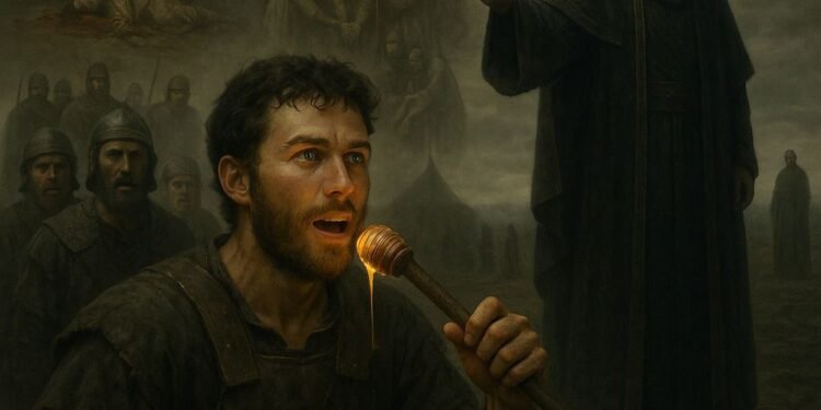 Jonathan did not know his father had made a foolish oath — “No one should eat until I’ve avenged my enemies.” But Jonathan ate honey, and his eyes brightened. When Saul found out, he said Jonathan must die.